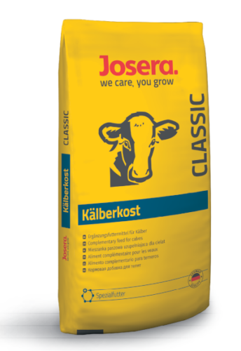 JOSERA Kälberkost est un muesli appétent pour le démarrage d’une alimentation solide. Les graines de soja et de lin sont des sources de protéines de haute qualité et les flocons de maïs et d’orge fournissent au veau une énergie facilement utilisable sous forme d’amidon, qui stimule la croissance des villosités du rumen. Parallèlement, sa structure favorise la stimulation de l’activité motrice du rumen. Les vitamines et les minéraux contenus dans JOSERA Kälberkost font de lui un muesli complet de démarrage à distribuer dès la 1ère semaine de vie.